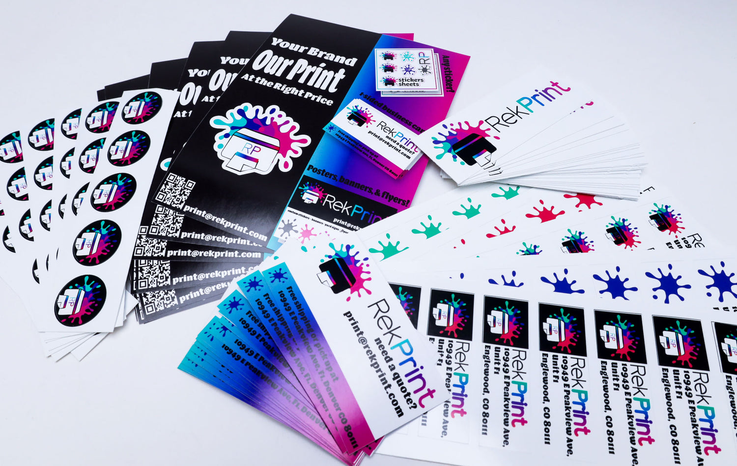 Everything you need to brand your business, all in one place. From business cards and flyers to stickers and banners, we provide vibrant, professional designs to help your brand stand out and leave a lasting impression.